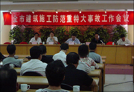 會議傳達了全省第二季度建筑施工防范重特大事故工作會議精神,對今年上半年我市建筑施工安全生產(chǎn)工作進行總結(jié),并提出全市下半年建筑施工安全生產(chǎn)工作意見。市建設(shè)局副局長陳淑雄就外出施工隊伍的安全生產(chǎn)管理情況作了通報,市安監(jiān)站吳漢川副站長還將近期拍到的施工現(xiàn)場圖片投影演示,對施工安全做法進行了點評。