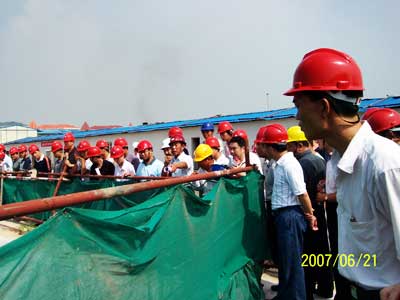 烈日炎炎,在熱火朝天的金葉島11B區(qū)的施工現(xiàn)場,中國華西企業(yè)有限公司金葉島項(xiàng)目部總工程師黃子慎向與會人員介紹了該工程的概況,帶領(lǐng)大家參觀工地的施工用電、基坑、模板支撐等工程,并逐一介紹安全用電原理、基坑圍護(hù)措施、模板支撐的作法。會上,龍湖區(qū)安監(jiān)站黃柱群站長向大家通報近期工地安全檢查情況,區(qū)建設(shè)局杜楚帆副局長對近年來區(qū)建筑施工安全生產(chǎn)工作進(jìn)行總結(jié),并研究部署下來全區(qū)的建筑施工安全生產(chǎn)工作的開展。最后,針對如何強(qiáng)化監(jiān)管、落實(shí)責(zé)任,嚴(yán)防建筑施工重特大惡性事故的發(fā)生,促進(jìn)全區(qū)建筑施工安全生產(chǎn)工作標(biāo)準(zhǔn)化開展,區(qū)城管局局長張義良同志提出四點(diǎn)要求:一是要強(qiáng)化安全責(zé)任意識,進(jìn)一步抓好建筑施工安全生產(chǎn)工作;二是要狠抓好各項(xiàng)管理制度的落實(shí),保障施工安全;三是要嚴(yán)格執(zhí)行建設(shè)工程安全生產(chǎn)措施費(fèi)單列制度,確保建筑安全生產(chǎn)費(fèi)用的有效投入;四是要加強(qiáng)監(jiān)督管理,努力提高安全監(jiān)管水平。