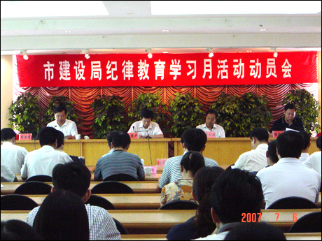 會上,王德聲局長對組織好本次紀律教育學習月活動進行動員講話,要求建設系統(tǒng)全體干部職工不斷增強對開展紀律教育學習月活動重要性的認識,以“加強作風建設,勤政廉政為民”為主題,以提高黨的執(zhí)政能力和領導水平,加強機關效能建設為目標,有針對性地深入開展“三項”教育活動。一是深入開展理想信念教育,做到四個“堅定不移”,即:堅定不移地堅持解放思想;堅定不移地推進改革開放;堅定不移地促進科學發(fā)展、社會和諧;堅定不移地為全面建設小康社會奮斗;二是深入開展優(yōu)良作風教育;三是深入開展廉潔從政教育,要通過邀請紀檢監(jiān)察部門負責同志上專題學習輔導講座及觀看正反典型教育片等形式,結合市行政電子監(jiān)察系統(tǒng)的建設和運行,進一步規(guī)范局機關工作人員的從政行為,提高機關效能,確保不出現(xiàn)審批事項在法定的時限內未能辦結或違規(guī)辦結,讓監(jiān)察系統(tǒng)預警,亮出黃牌或紅牌的情況。
