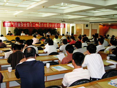 動(dòng)員大會(huì)后,緊接著又舉辦燃?xì)獍踩R(shí)講座,市燃?xì)鈪f(xié)會(huì)肖烈光會(huì)長(zhǎng)作了講話;市質(zhì)監(jiān)局葉揚(yáng)和王繼功同志分別就液化石油氣儲(chǔ)配站特種設(shè)備安全管理、瓶裝液化石油氣充裝與銷售法規(guī)知識(shí)進(jìn)行了詳細(xì)的輔導(dǎo)講解。