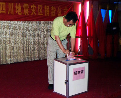 5月15日下午,龍湖區(qū)建設(shè)局舉行向四川地震災(zāi)區(qū)捐贈(zèng)的儀式。局長(zhǎng)張義良同志在捐贈(zèng)大會(huì)上發(fā)動(dòng)大家要弘揚(yáng)一方有難八方支援的傳統(tǒng)美德,為災(zāi)區(qū)人民獻(xiàn)愛心,支援地震災(zāi)區(qū)的救援和重建工作,并帶頭捐款。在他的帶動(dòng)下,局機(jī)關(guān)6個(gè)股室和3個(gè)直屬事業(yè)單位、8個(gè)執(zhí)法中隊(duì)的在職干部職工、執(zhí)法隊(duì)員積極響應(yīng)、踴躍捐款。佘紹明、王瑞忠、陳有義等長(zhǎng)期患病的老同志也委托子女到現(xiàn)場(chǎng)代捐。到目前為止,我局共收到干部職工、離退休老同志的愛心捐款25901元。此外,一些干部職工除了在本局捐款,還參與一些慈善機(jī)構(gòu)組織的捐款,如機(jī)動(dòng)中隊(duì)執(zhí)法隊(duì)員林曼珊從自家服裝店拿出100件衣服進(jìn)行義賣,義賣所得的1350元交給藍(lán)天義工支援災(zāi)區(qū)。退休干部鄭秀卿也專從深圳打電話要求將本月的生活補(bǔ)貼630元捐出。