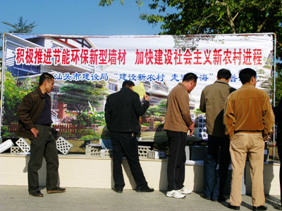 在活動(dòng)現(xiàn)場(chǎng),該局共設(shè)置村鎮(zhèn)規(guī)劃、村鎮(zhèn)建設(shè)、工程建設(shè)、燃?xì)夤芾?、勘察設(shè)計(jì)、房產(chǎn)管理、人防建設(shè)等10多個(gè)咨詢(xún)處,發(fā)放建設(shè)新農(nóng)村各種宣傳資料、畫(huà)冊(cè)、圖畫(huà)共8000多份,展示混凝土空心磚、多孔增壓灰砂磚、加氣增壓砌磚等新型墻材(實(shí)物)200多個(gè),達(dá)到了建設(shè)新農(nóng)村、服務(wù)群眾的目的。