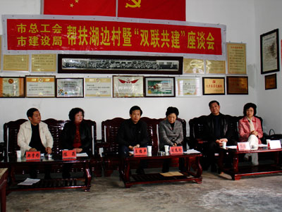 市總工會(huì)、市建設(shè)局領(lǐng)導(dǎo)班子和湖邊村黨員干部舉行座談