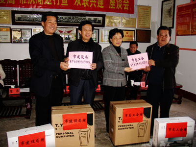 市人大副主任、市總工會(huì)主席劉遠(yuǎn)珍和市建設(shè)局局長(zhǎng)王德聲向村捐贈(zèng)電腦和春節(jié)慰問(wèn)資金