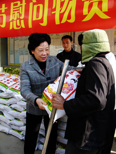 市人大副主任、市總工會(huì)主席劉遠(yuǎn)珍向貧困村民發(fā)放春節(jié)慰問(wèn)物資