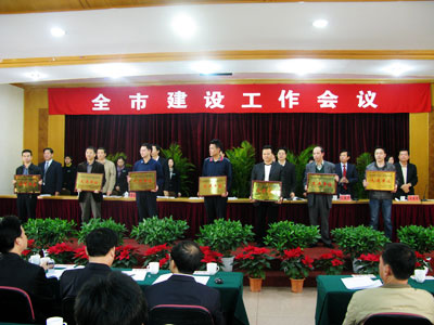會上,市建設局局長王德聲全面總結回顧了去年全市建設工作情況,全市建設事業(yè)呈現(xiàn)加快發(fā)展、協(xié)調發(fā)展、可持續(xù)發(fā)展的良好態(tài)勢。一是城鄉(xiāng)建設對全市經濟社會發(fā)展的作用明顯增強。全力推進市政基礎設施項目建設,全年完成市政投資3.5億元,新建道路面積近50萬平方米,新筑下水道4.1萬米,新增綠化面積13.8萬平方米,建設規(guī)模和投資額均創(chuàng)近十年之最。舊城改造穩(wěn)步推進,全年舊城改造竣工新樓55幢,建筑面積30.5萬平方米,回遷居民259戶,完成6個片點改造。二是建筑業(yè)的支柱產業(yè)地位明顯提高。全年完成施工產值168.7億元,比增15.5%,建安營業(yè)稅6.98億元,轉移外稅1.6億元,建筑業(yè)在我市的支柱產業(yè)地位日益突出;“走出去”步伐加大,完成外出施工產值108.2億元,占施工總產值64 %。三是工程質量安全和市場監(jiān)管力度明顯加大。三是工程質量安全和市場監(jiān)管力度明顯加大。繼續(xù)強化工程質量安全管理,全年創(chuàng)部優(yōu)工程4項,省優(yōu)工程38項,市優(yōu)工程25項;建安集團承建的廣州富力國際公寓工程、廣東建華裝飾參建的首都機場航站樓、停車場及交通中心工程獲“魯班獎”,汕潮公司承建的中山萬科城市風景花園工程獲“詹天佑獎”。四是節(jié)能減排和科技創(chuàng)新取得明顯進展。著力推進建筑節(jié)能工作,科技創(chuàng)新和人才建設取得新進展。五是支援抗震救災和災后恢復重建工作取得明顯成效。全市建設行業(yè)捐款超過1000萬元,捐建活動板房400多套。充分發(fā)揮公共服務設施援建專責小組組長單位的協(xié)調作用,高質量高效率推進對口援建工作。六是精神文明建設和黨風廉政建設明顯加強。市建設局被評為“全市創(chuàng)建好班子先進單位”和“廣東省建設系統(tǒng)精神文明建設示范單位”。
