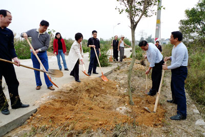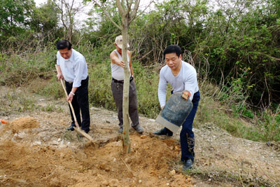 綠化工程是市建設(shè)局為該村規(guī)劃的科學(xué)發(fā)展措施之一。3月13日,在植樹(shù)節(jié)來(lái)臨之際,市建設(shè)局同駐村單位市總工會(huì)一起籌集資金購(gòu)買(mǎi)了榕樹(shù)近400株。該局在顏廷啟副局長(zhǎng)的帶領(lǐng)下,一行五十多人來(lái)到該村,和該村黨員干部一起,對(duì)村道兩旁和廣場(chǎng)進(jìn)行植樹(shù)綠化。湖邊小學(xué)的學(xué)生聞?dòng)?,也自發(fā)趕來(lái)參加植樹(shù)。