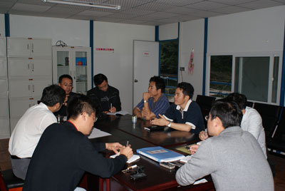 支部書記林岳鈿陪同局領(lǐng)導(dǎo)與援建工作組領(lǐng)導(dǎo)連夜召開現(xiàn)場會議,討論解決施工中遇到的地質(zhì)問題