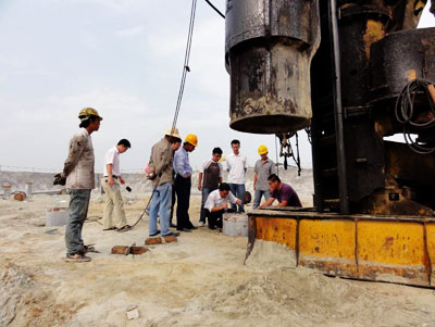 市質(zhì)監(jiān)站科研組以全市科技計劃項目為依托,在林岳鈿站長、黃曉暉博士的組織下,先后在觀瀾豪庭、市南區(qū)污水處理廠等工程開展試驗工作,樁型涉及灌注樁、管樁等多種形式。測試噸位達(dá)到13000KN。特別是在錘擊管樁中荷載箱需要承受巨大的錘擊力的作用,研究人員經(jīng)過艱苦的研究克服了一系列的技術(shù)難題,試驗最終取得圓滿成功。試驗過程中、南京東南大學(xué)龔教授、大橋局港珠澳大橋指揮部總工室謝時紅教授高工等專家學(xué)者親臨現(xiàn)場觀摩指導(dǎo),給以一致好評。