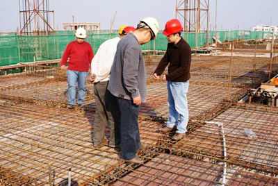 市質監(jiān)站監(jiān)督人員在施工現(xiàn)場