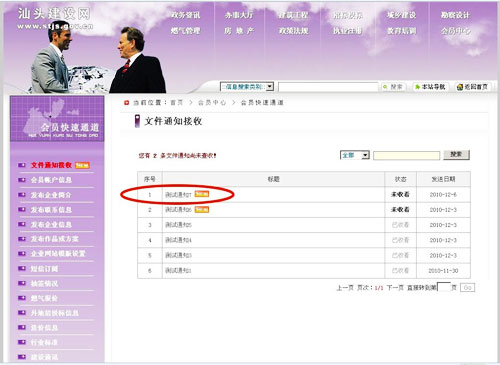 1、在后臺系統(tǒng)中點擊“文件通知接收”欄目(見圖3)。