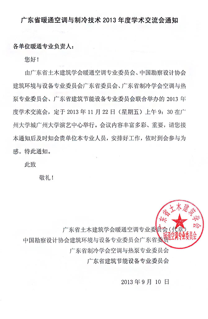 廣東省暖通空調(diào)與制冷技術(shù)2013年度學(xué)術(shù)交流會(huì)通知