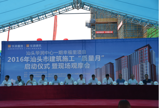 瀏覽次數(shù):1383為貫徹落實市委、市政府關(guān)于爭創(chuàng)“全國質(zhì)量強市示范城市”的決策部署,按照省住建廳關(guān)于開展今年質(zhì)量月活動的通知要求,9月5日, 市住建局在“汕頭華潤中心一期幸福里項目”建筑工地召開汕頭市2016年建筑施工“質(zhì)量月”啟動儀式暨現(xiàn)場觀摩會。市政府陳武南副市長、省住建廳質(zhì)安處林兆雄處長、省建筑業(yè)協(xié)會倪建國秘書長、市住建局裴慶科局長、市質(zhì)監(jiān)局林子雄副局長等領(lǐng)導出席活動。