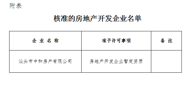 根據(jù)《中華人民共和國行政許可法》、《中華人民共和國城市房地產管理法》和有關房地產開發(fā)企業(yè)資質管理規(guī)定,現(xiàn)將經我局審查核準的房地產開發(fā)企業(yè)名單予以公布(見附表)。
