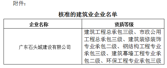 關(guān)于建筑業(yè)企業(yè)資質(zhì)核準(zhǔn)結(jié)果的公告汕住建公告〔2018〕11號(hào)