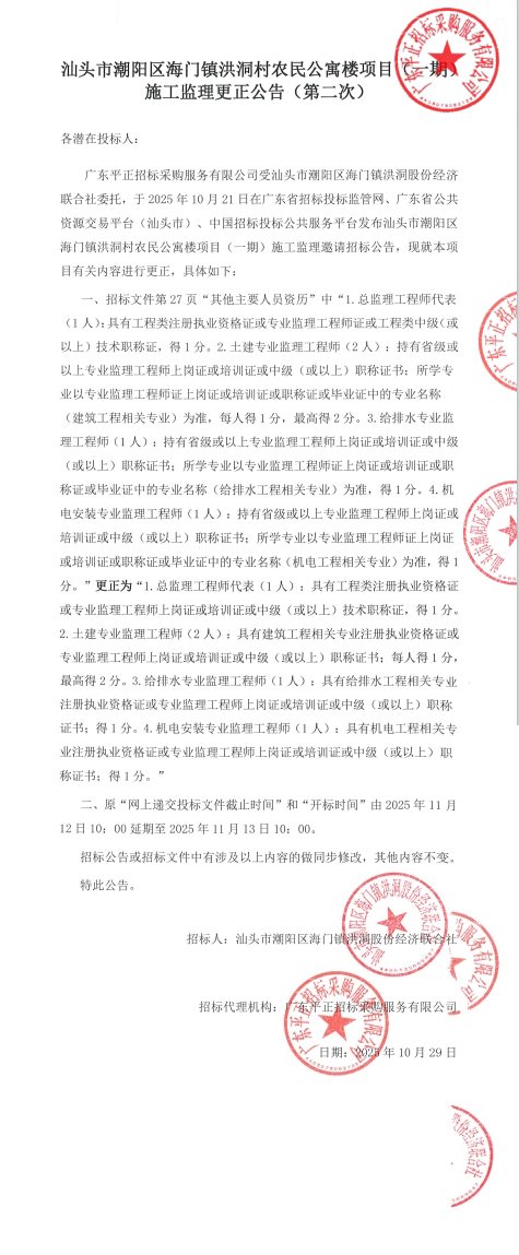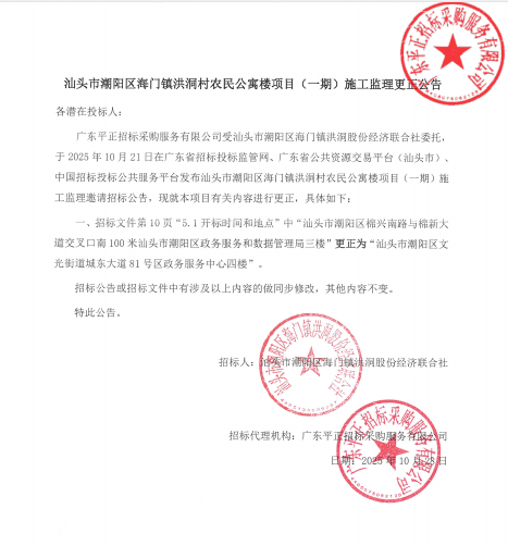 汕頭市潮陽(yáng)區(qū)海門(mén)鎮(zhèn)洪洞村農(nóng)民公寓樓項(xiàng)目(一期)施工監(jiān)理